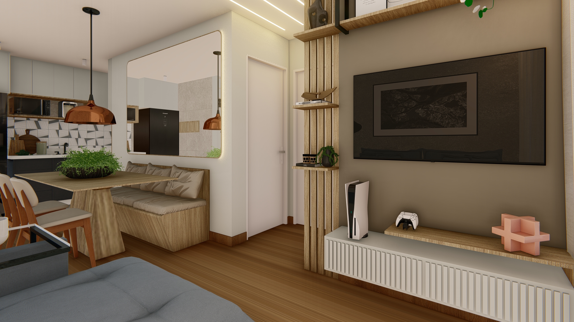 Desenvolvemos projetos de interiores que refletem a identidade dos moradores ou a proposta de cada negócio. Combinamos conforto, estética e funcionalidade, cuidando de cada escolha: cores, iluminação, materiais e mobiliário.